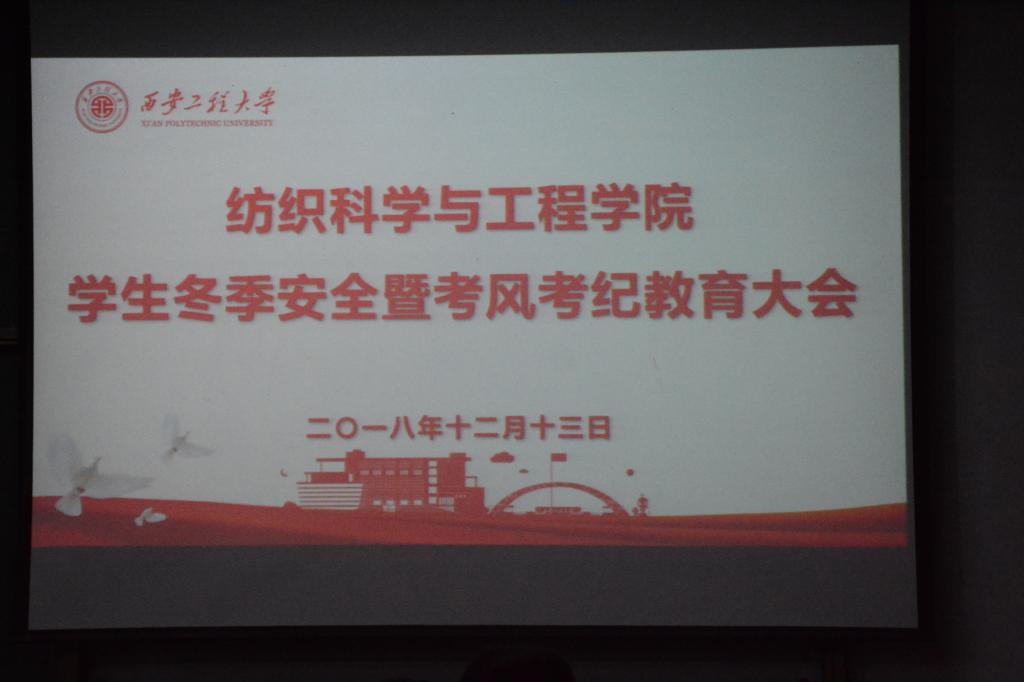 2018年12月13日,suncity太阳新城在金花校区623教室召开学生冬季安全暨考风考纪教育大会。参加本次大会的老师有学院党委副书记郭西平、学生工作办公室主任赵勇进、团总支书记付成程、2016级本科生辅导员高黎,suncity太阳新城所有研究生会学生会学生干部,各班委和舍长200余人参加了本次大会。本次大会由赵勇进老师主持。