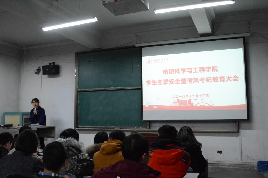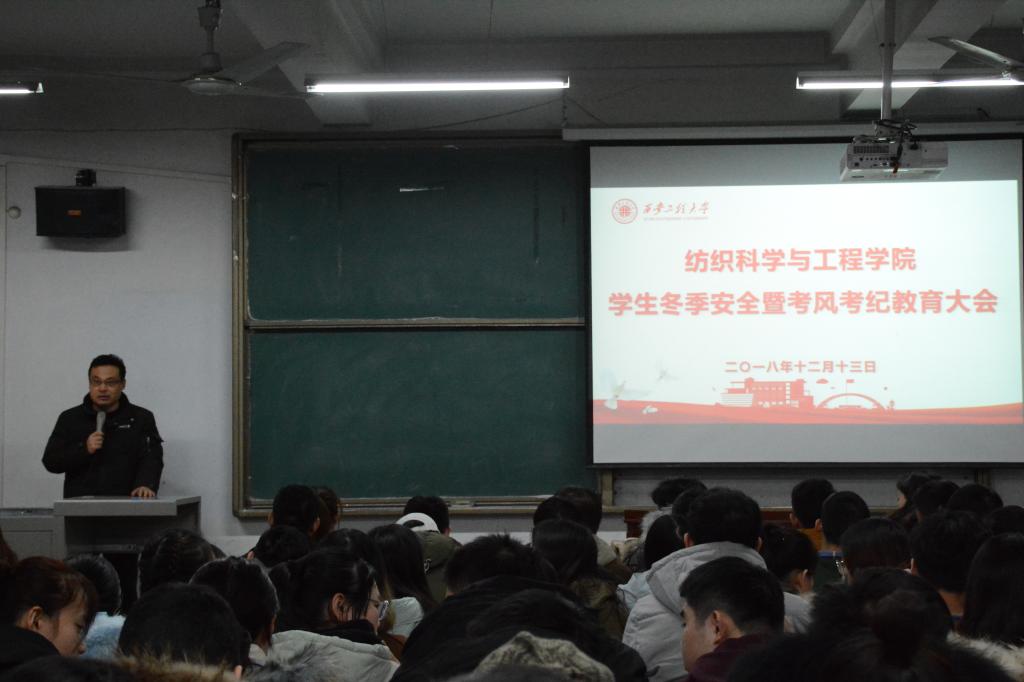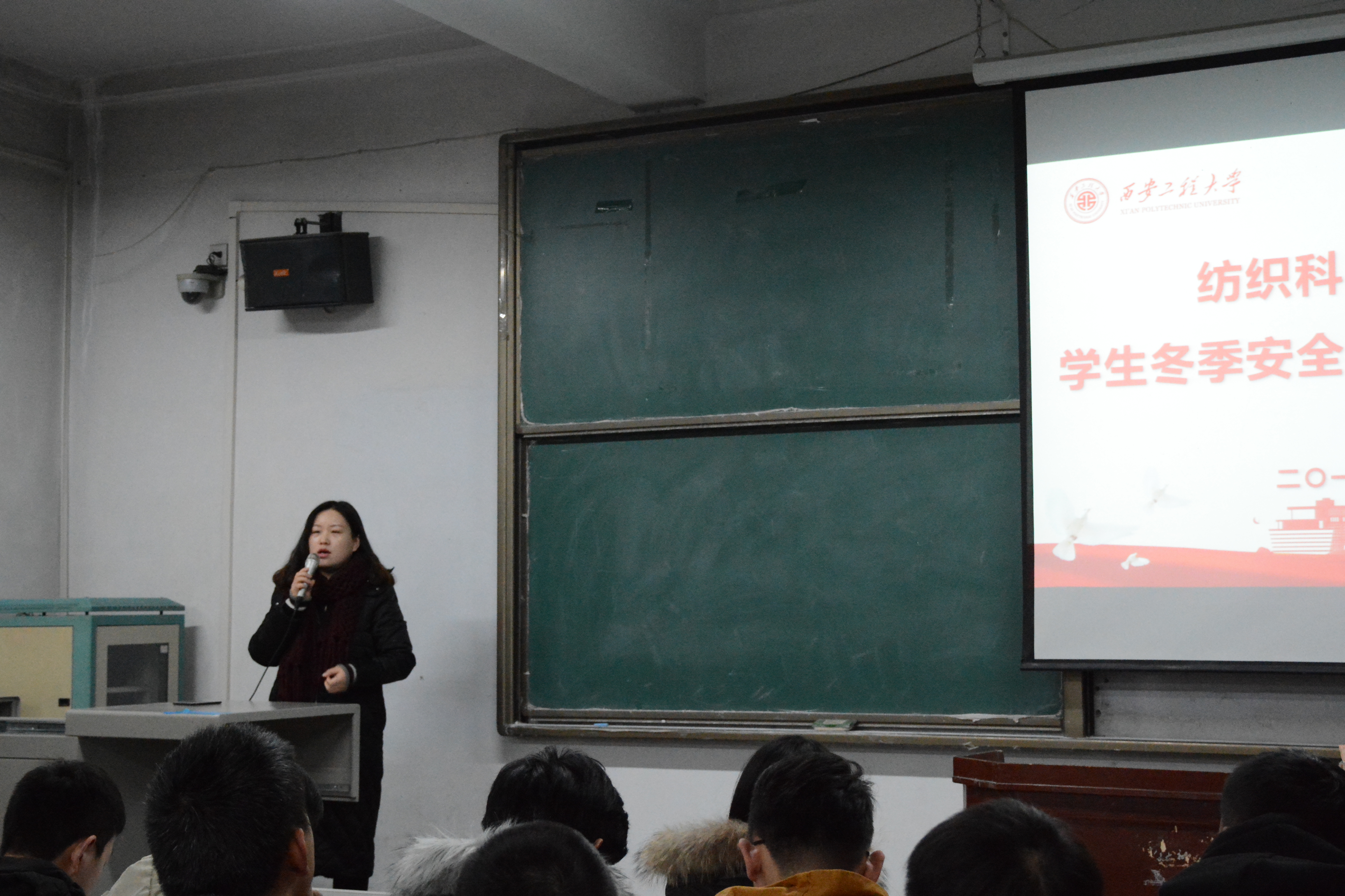 首先,郭西平老师向同学们强调了学校对于学生安全以及考风考纪相关规定,着重强调以下三点:一是严禁在学生公寓饲养宠物、使用违章电器、抽烟,严禁在校外住宿以防被盗被骗,如有发现及时和老师反映;二是做好防盗工作,离宿后锁好门窗,不要留宿他人,保管好自己的贵重物品,在实验室里严禁使用大功率违章电器,保管好实验室物品;三是希望同学们注意冬季保暖和饮食安全。