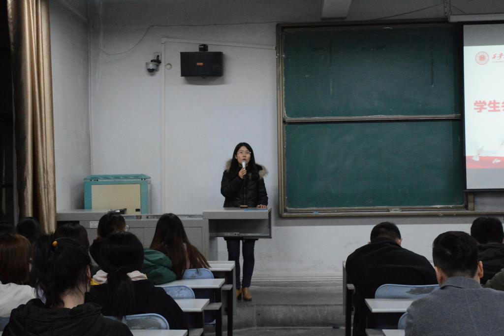 接着,高黎老师详细介绍了学生近期心理辅导工作,希望与会学生干部多关注身边同学,有情况及时反映给老师,防患于未然;付成程老师详细介绍了大四学生目前考研、就业情况,并向此次与会学生提出以下两点建议:一、要对未来生活有明确的规划,提前做好升学、就业的准备;二、拓展兴趣爱好,保持健康的身体,积极参加活动丰富自己的大学生活。