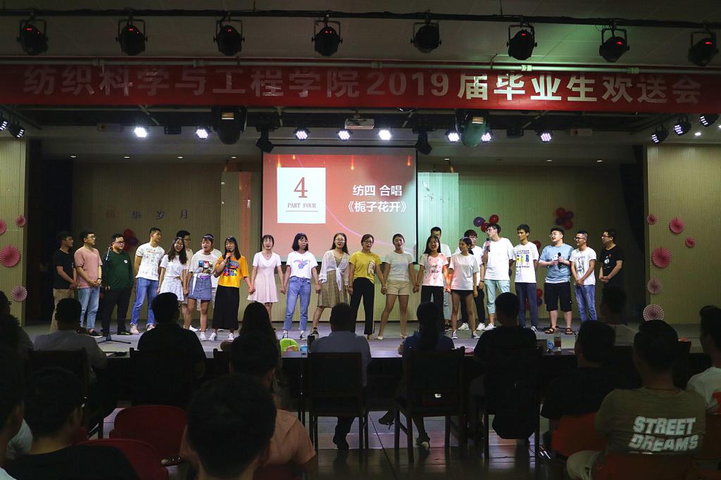 首先,孙润军致辞,祝愿2019届所有毕业生前程似锦,希望走入社会的他们能为母校,为suncity太阳新城增添光彩。师文钊作为教师代表表达了对19届毕业生的淳淳教诲以及依依不舍之情。学生代表崔国栋代表19届全体毕业生感谢学校学院培养。欢送毕业文艺演出在火热且充满青春活力的啦啦操表演中拉开了序幕帷幕,2015级纺织工程四班一首《栀子花开》让现场的同学们热泪盈眶,随之而来的纺织工程三班的歌曲《水星记》令大家陷入最美的青春回忆中,吉他弹唱《天后》使老师和同学们沉浸在民谣吉他的古典美中,这是轻化一班的同学通过音乐传达不舍。接着,精彩的游戏环节把现场的气氛推向高潮,在游戏中通过游戏传递了大家互相的不舍和师生间的情谊。纺织工程五班的李陶宛为大家送上舞蹈,悠扬的音乐更衬离别之情,一首《春风十里》是对大家最由衷,最美好的祝福。在大会结束之际,辅导员老师依次上台,依依惜别之际,他们说出自己心中的不舍也希望所有毕业生们都能拥有锦绣前程。