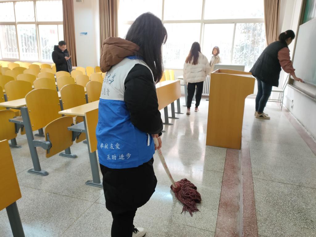 活动开始前,志愿者们积极响应,为此次活动做了充分的准备,各班志愿者分别前往活动地点,开始了本次活动。他们干劲十足,现场迅速分配好各自的任务,以最饱满的精神状态投入其中,有的拿着扫帚仔细地清理藏在桌子下的灰尘、垃圾;有的拿着拖把卖力地拖着;有的拿着抹布认真擦拭讲台桌上的粉笔灰,发扬了不怕苦、不怕累的志愿精神,不仅充分彰显了青年志愿者的先锋模范作用,而且也树立起了“哪里需要志愿者,哪里就有志愿者”的良好形象。“校园是我们的家,这是我们该做的”“为同学们提供一个舒适地学习环境,是件多么快乐的事情”这是每个参加此次活动的志愿者们的心声,大家的积极性非常高,都愿意为洁净校园出一份力。