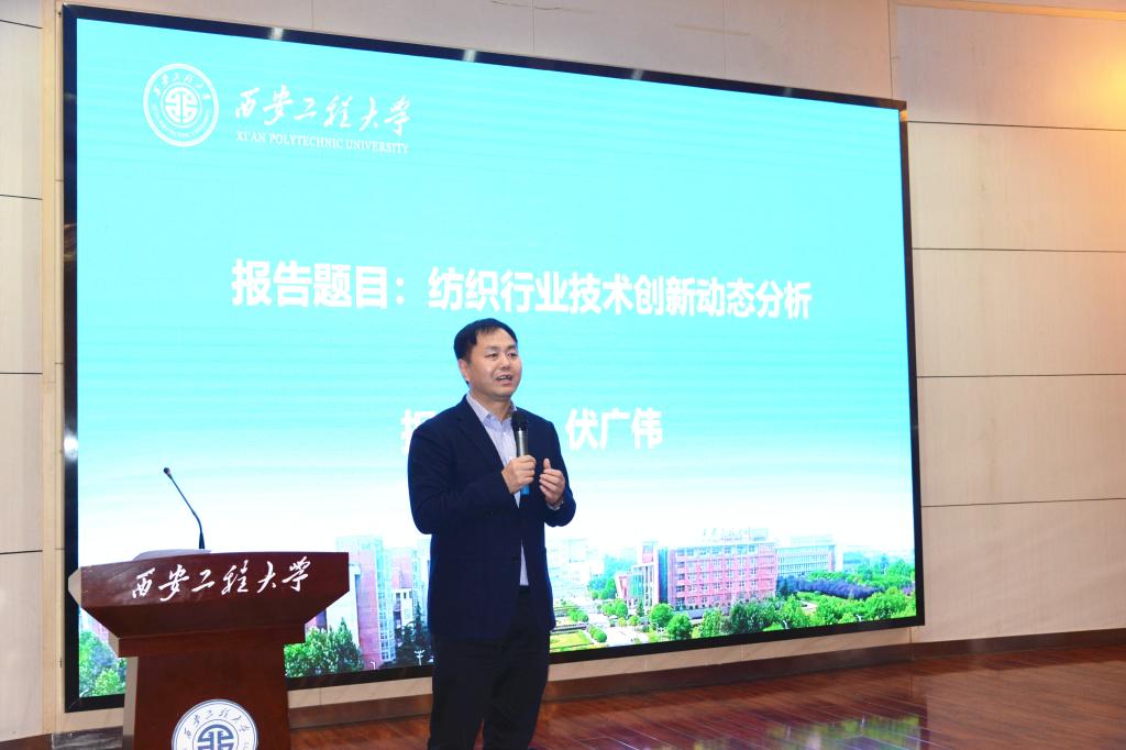 在受聘仪式结束后,我校客座教授伏广伟随即为在场师生作了题为《纺织行业技术创新动态分析》的学术报告。报告中,伏教授回顾了我国改革开放40年以来,纺织服装行业的发展状况、所取得的成就及存在问题,并结合自身实践经历对纺织行业未来发展趋势进行了分析和预测,鼓励广大学生积极学好专业知识和专业技能,立志于服务纺织行业,推动纺织技术的不断创新。