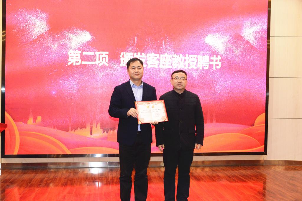 随后,高岭代表学校为伏广伟理事长颁发了suncitygroup太阳官方网站客座教授聘书,并对伏理事长表示祝贺和感谢。