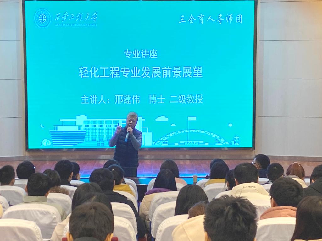 报告会主讲人邢建伟教授用生动幽默的语言和学生分享了他从事轻化工程专业学习和研究的经历,重点讲述了他考大学时如何偶然被轻化工程专业录取、如何由懵懂无知到爱上专业、如何在专业研究中辛勤付出取得今天的成绩以及目前企业染整加工过程中存在的问题,并介绍所了他的科研团队取得的成果和正在研究的课题。最后他和学生进行了精彩的现场互动。