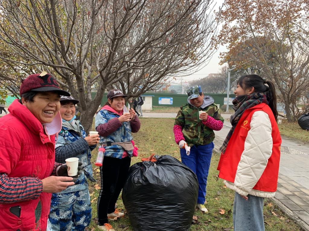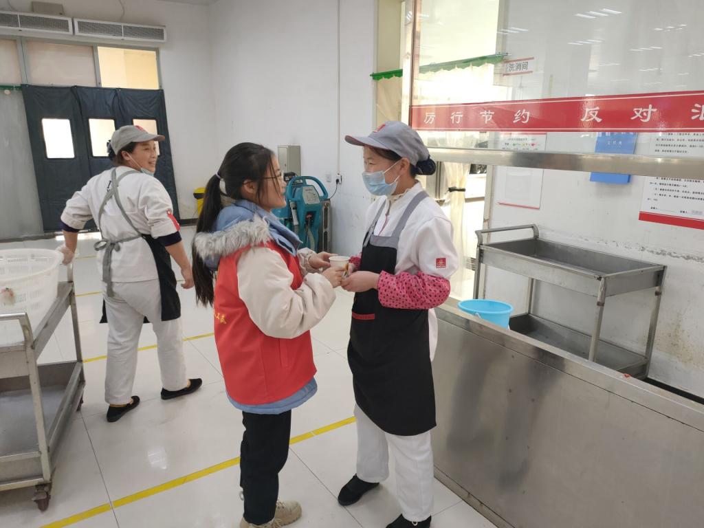 2020年12月14日,suncity太阳新城三全育人导师团家庭经济困难学生给校园里的环卫叔叔、保安大叔、食堂打饭阿姨、快递小哥和宿管阿姨递上一杯温暖的茶水,和他们聊家常,帮他们做手头的活,感谢他们的辛勤付出,在凛凛寒冬中送出一份爱和温暖。(撰稿:邓恩征;审核:胡小进)