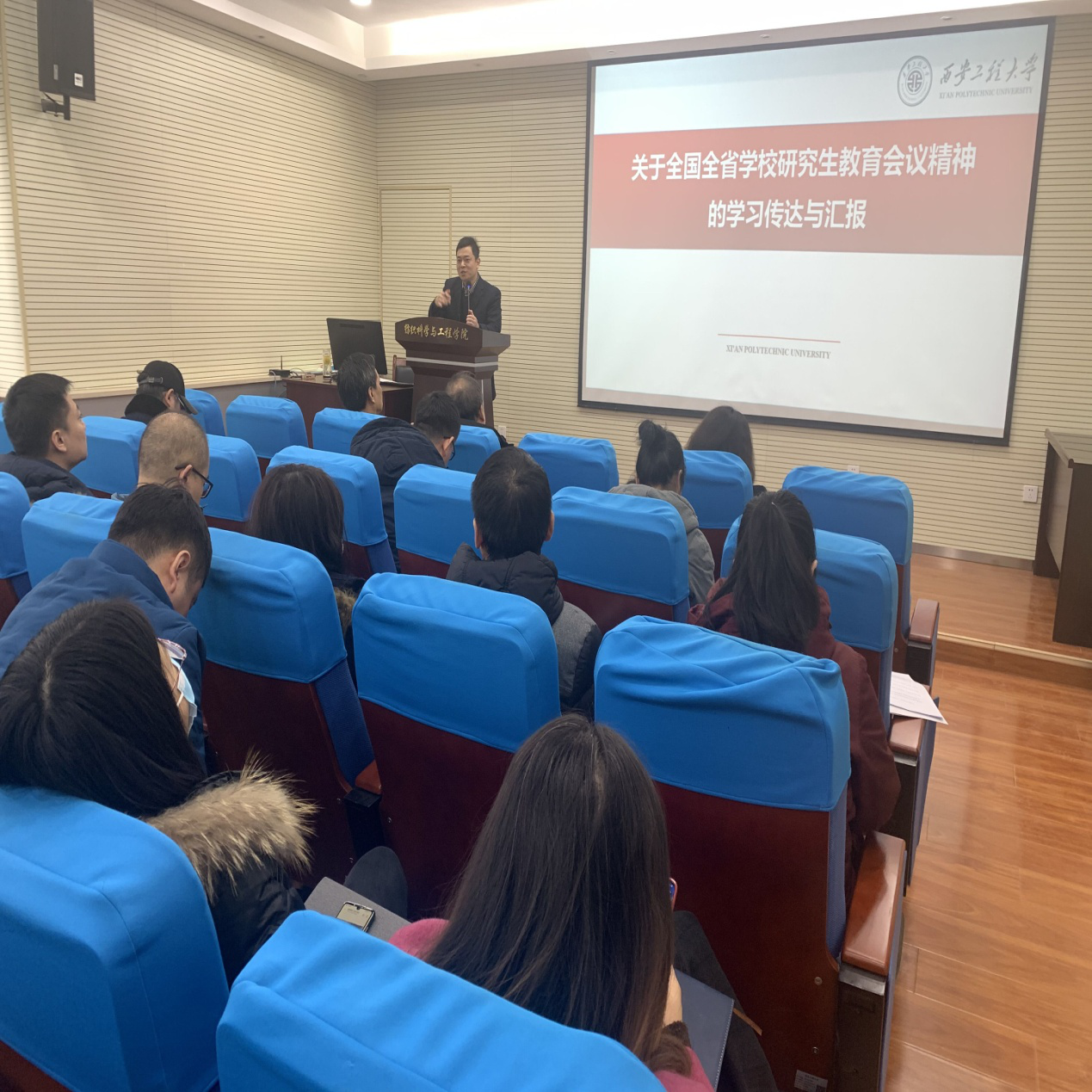 其次,学院党委书记胡小进向全体教职工传达全国、全省、suncitygroup太阳官方网站研究生会议精神,从会议的指导思想,基本原则与总体目标,强调学院应全面落实育人为本,加强研究生思想政治工作;对接纺织行业需求,不断提升学院学科实力;深化改革,创新学院研究生人才培养模式。
