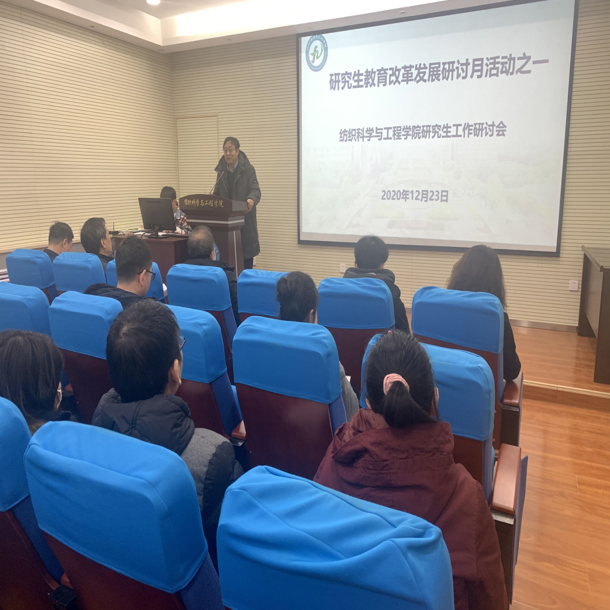 2020年12月23日,suncity太阳新城在姚穆报告厅举办研究生教育改革培养研讨会。大会特邀经纬客座教授顾伯洪作题为“纺织学科与纺织类教师与研究生质量提升方案”的报告,传达学习全国、全省研究生教育会议精神。同时会议对学院2021年研究生教育改革等各项工作进行了安排部署,学院党政领导班子成员和全体教职工参加会议,会议由学院副院长王进美主持。