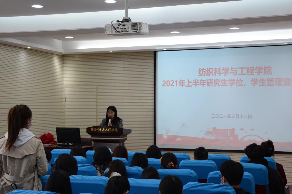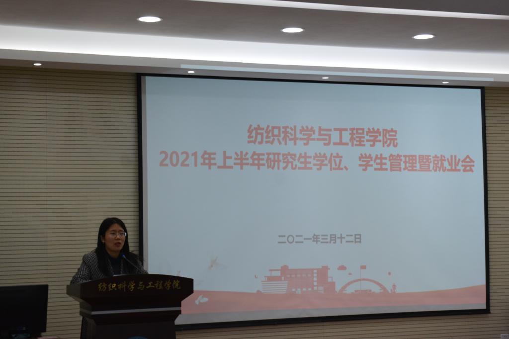 接着,郭西平就研究生就业、安全稳定、疫情防控、日常管理等方面进行了详细强调。她提醒大家要按照好毕业的相关要求和掌握好节奏,合理安排时间,正确对待毕业前各种压力,如果遇到困难及时和导师、辅导员沟通。