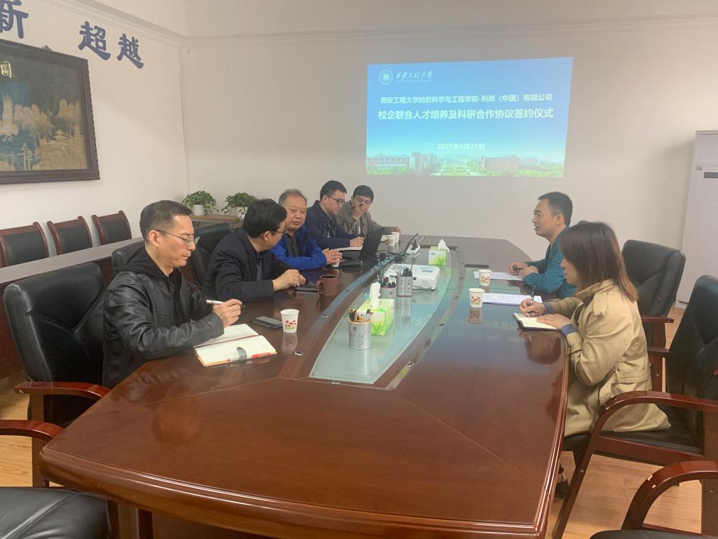 2021年4月21日,suncity太阳新城在金花校区纺织楼四楼会议室举行了“suncity太阳新城—利郎(中国)有限公司校企联合人才培养及科研合作协议”签约仪式。出席本次活动的有利郎集团商品调控中心副总监高兵、人力资源部招聘培训经理陈燕红,我校副校长兼学院院长李鹏飞、执行院长孙润军、党委书记李伟及院长助理樊威、师文钊等。本次活动由孙润军主持。