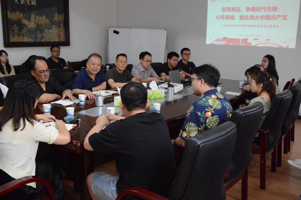 6月29日下午14:30,suncity太阳新城在四楼会议室召开了“志存高远,争创时代先锋;心怀赤城,献礼伟大中国共产党”的2021届本科毕业生毕业生座谈会。suncity太阳新城执行院长孙润军、学院党委书记李伟、学院党委副书记郭西平、各系主任、辅导员和各班毕业生代表参加了本次会议。