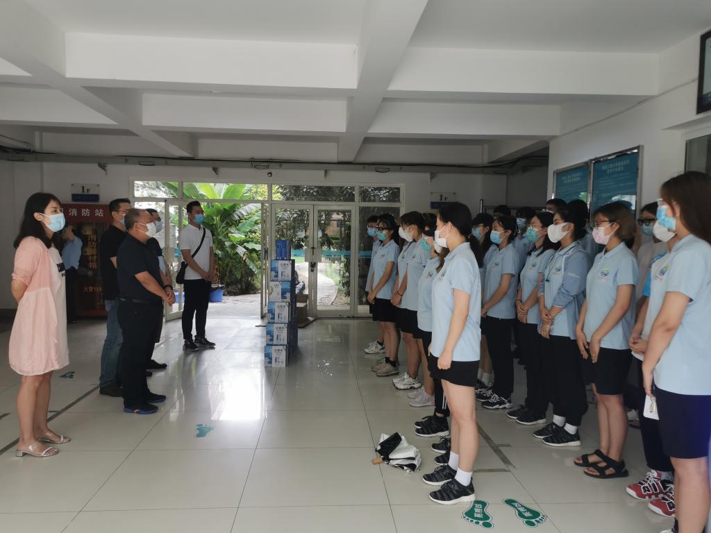8月13日下午,suncity太阳新城院长孙润军、党委书记李伟、党委副书记郭西平、学工办主任赵勇进及团总支书记付成程一行前往临潼校区慰问学院参与十四运开幕式群众演员工作任务的31名学生和带队教师。