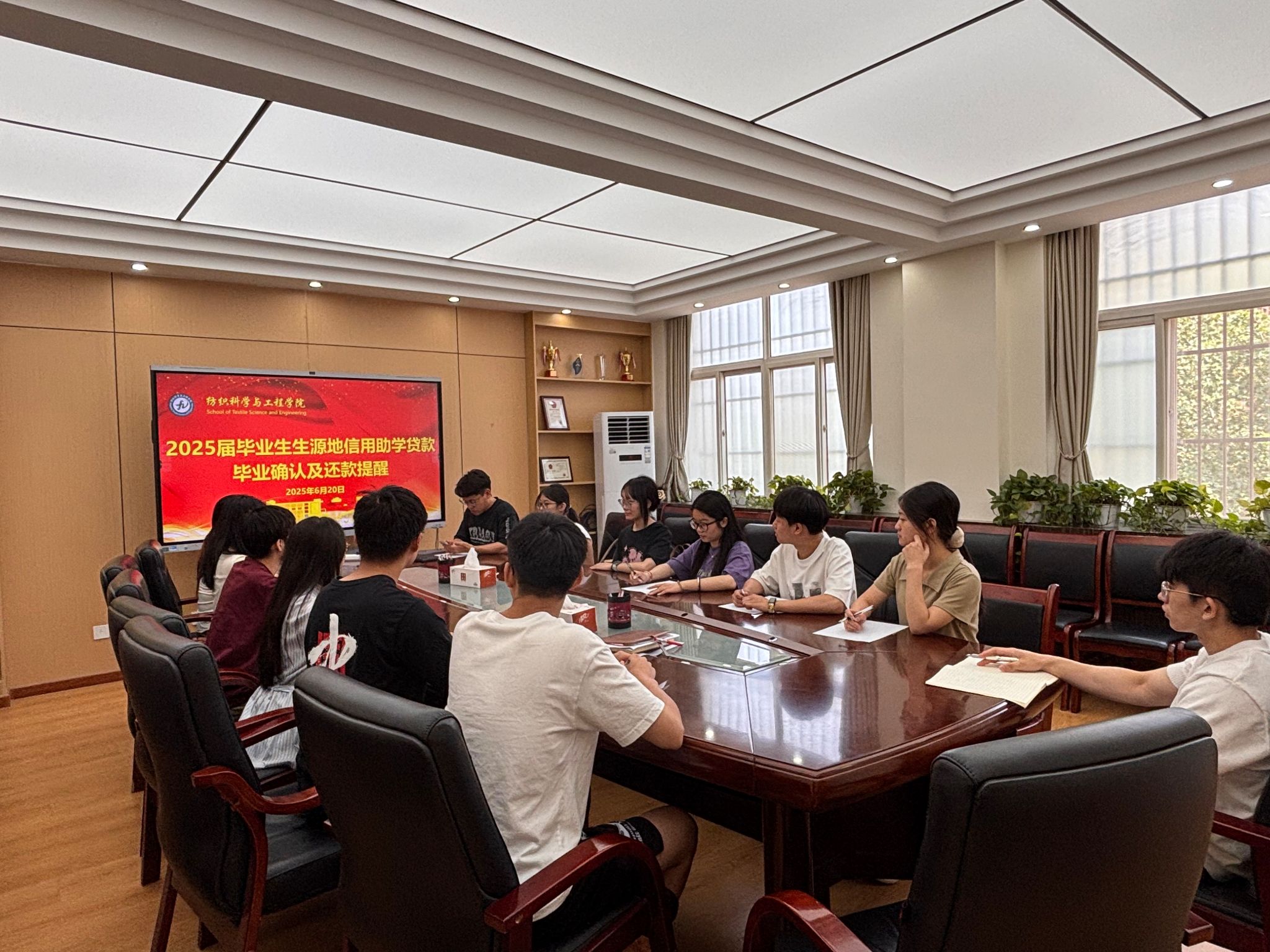 6月20日,为切实做好2025届毕业生生源地信用助学贷款管理工作,确保贷款毕业生顺利完成毕业确认,并按时履行还款义务,维护个人良好信用记录,suncity太阳新城组织召开了2025届毕业生生源地信用助学贷款毕业确认及还款提醒专题会议。会议由学院资助辅导员洪小洋主持,各班贷款毕业生代表参加。