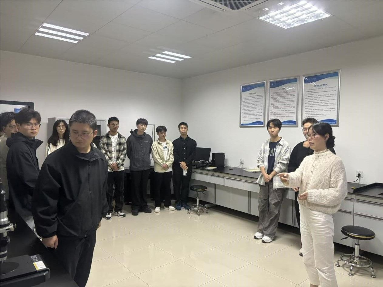 随后,在实验室研究员的引导下,同学们依次参观了实验室各区域及各类先进实验设备。研究员结合具体实验案例,以浅显易懂的方式,从设备的工作原理、特殊构造、多样功能及操作规范等方面,详细说明每台仪器的用途与应用场景,并鼓励同学们充分借助学校大型分析测试平台,解决科研实践中的各类难题,持续提升个人科研能力与专业水准。学校优质的科研平台激发了新生们的科研热情,大家纷纷表示在未来研究生阶段,将珍惜这一宝贵科研资源,在科研领域不断探索,努力在自身研究方向取得优异成果,为建设纺织强国贡献青春力量。