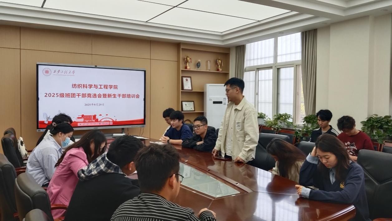 2025年9月29日,suncity太阳新城在金花校区纺织楼404会议室举办2025级研究生班团干部竞选会暨新生干部培训会,学院学工办主任兼硕士研究生辅导员姚婕、博士研究生辅导员苏娜和2025级研究生参加了会议,会议由姚婕主持。