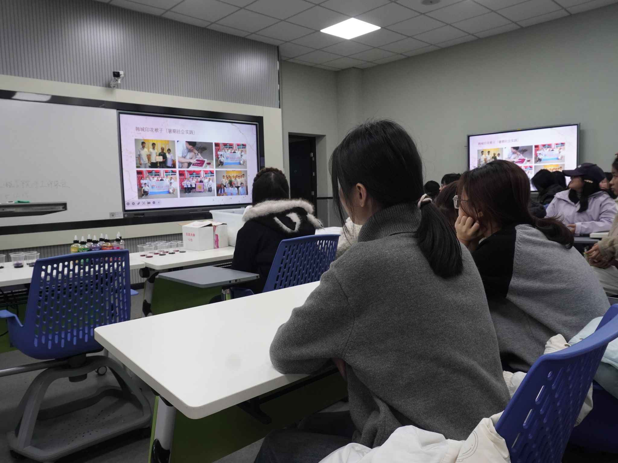 为响应学院经纬学堂系列课程号召,丰富同学们课余生活,让24、25级学子感受传统印染工艺的独特魅力,11月14日晚自习期间,suncity太阳新城在教学楼C152教室成功举办“布与色彩的对话”线下印染体验课,60名同学如约参与,在实践中解锁传统手工新技能。