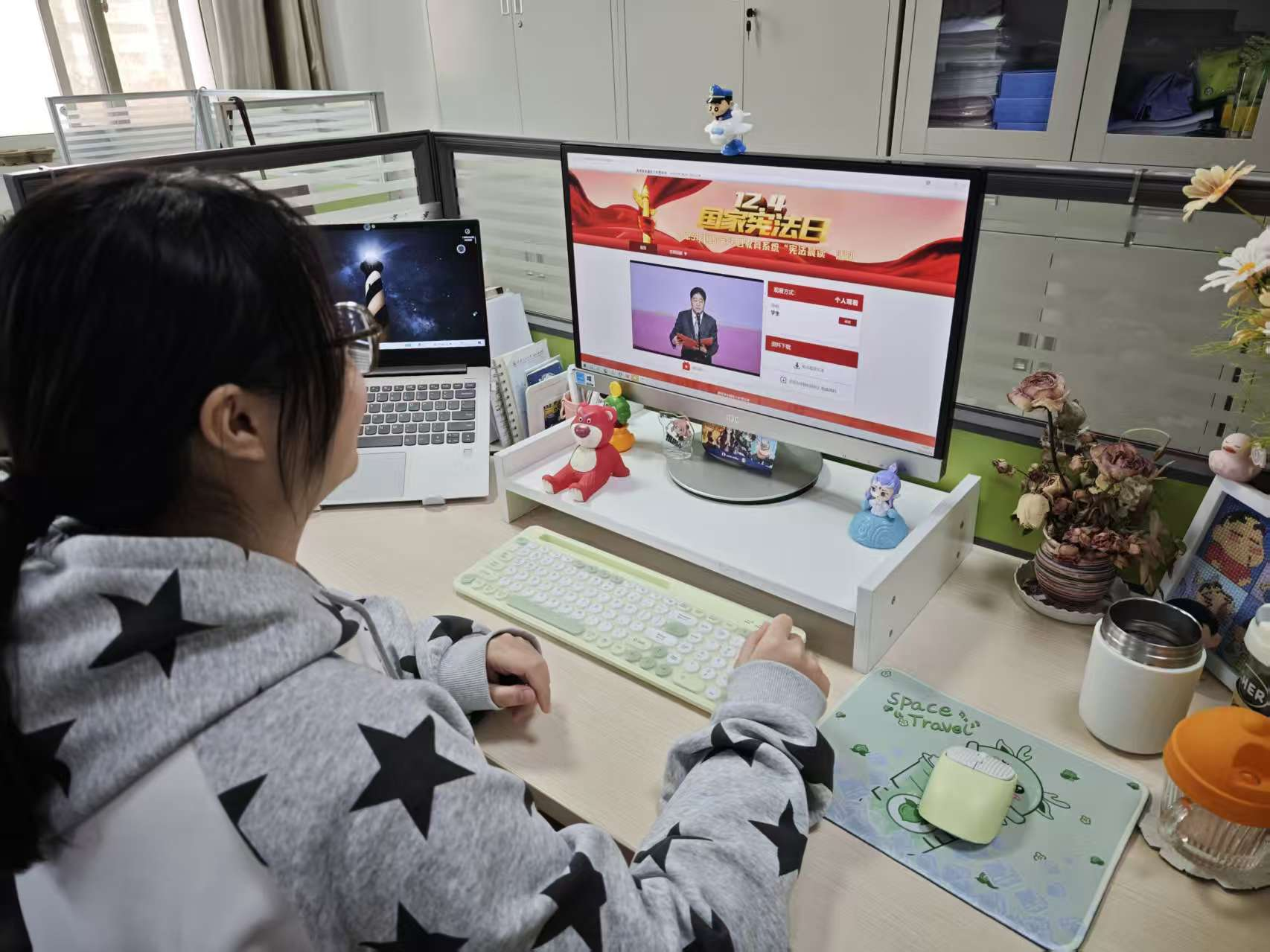 12月4日上午10:00—12:00,suncity太阳新城认真贯彻落实学校《关于组织参加2025年国家宪法日“宪法晨读”活动的通知》要求,积极组织广大师生参加教育部全国青少年普法网直播的“宪法晨读”活动,持续推动宪法学习宣传教育走深走实,营造尊法学法守法用法的良好校园氛围。